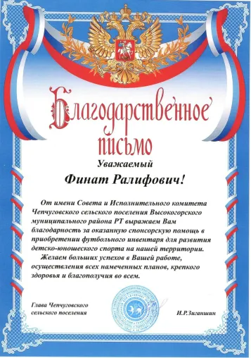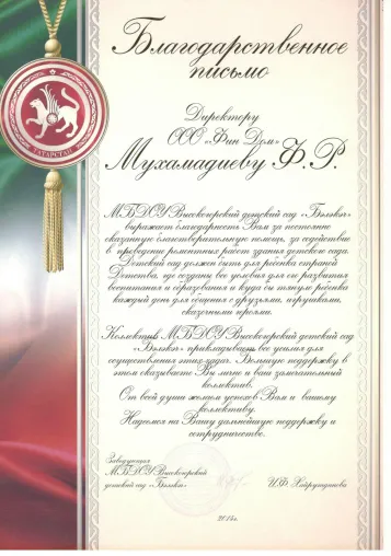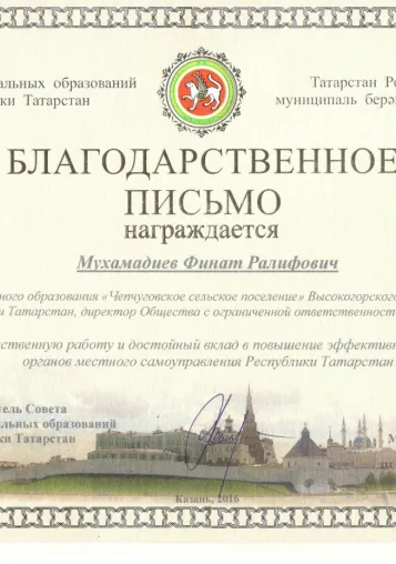 Благодарность от Кабинета Министров Республики Татарстан