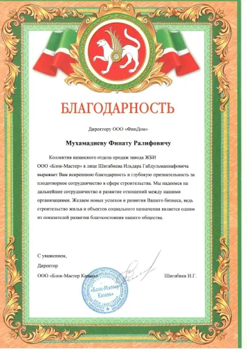 присвоено директору компании ООО "СЗ "ФинДом" Финату Ралифовичу Мухамадиеву